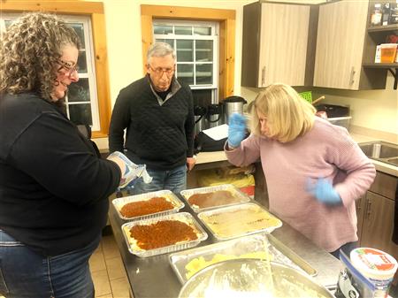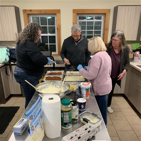 On January 31st instead of our regular meeting we all gathered at Soule Homestead where they graciously loaned us their kitchen so we could make lasagnas for Lasagna Love.